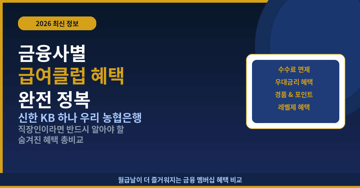 월급이 들어오는 통장, 그냥 아무거나 쓰고 있진 않으신가요? 2026년 기준 급여통장 혜택은 수수료 면제부터 우대금리, 환율 우대까지 차이가 꽤 큽니다. 직장인이라면 꼭 비교해봐야 할 핵심 포인트를 정리했습니다.