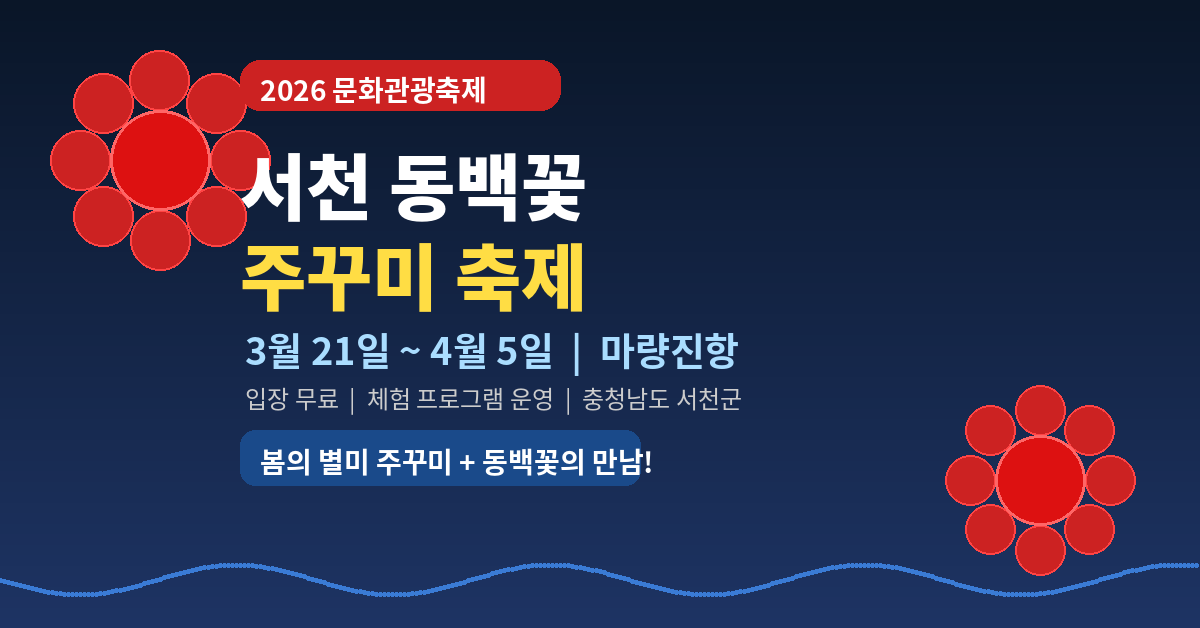 봄철 서해 여행지를 찾는다면 주목할 만한 축제가 있습니다. 바로 서천 동백꽃 주꾸미 축제입니다. 붉게 피는 동백꽃과 제철 주꾸미를 함께 즐길 수 있어 매년 관심을 받는 충남 대표 봄축제 중 하나입니다.