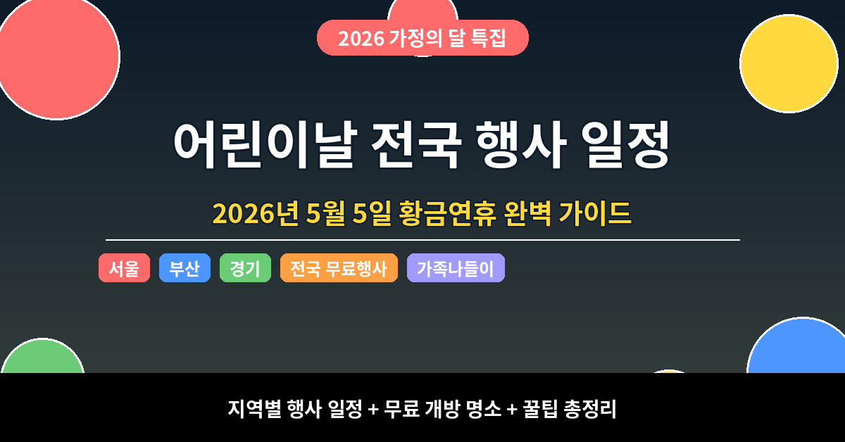 2026 어린이날 전국 행사 일정은 서울, 부산, 국립박물관, 국가유산 행사 중심으로 다양하게 준비되어 있습니다. 무료 체험과 공연이 많지만, 일부 프로그램은 사전 예약이 필요할 수 있으니 방문 전 공식 홈페이지를 꼭 확인하시기 바랍니다.